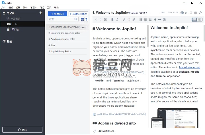 Joplin 是一个自由开源的笔记和待办事项的应用程序,适用于 Linux、Windows、macOS、Android 和 iOS 平台。开源可私有化 笔记文件保存在本地 支持多端同步 支持 markdown 重视用户隐私,重视数据安全。支持端到端加密。数据迁移方便。作为一款开源笔记软件,Joplin 不会锁死你的笔记数据,提供了多种多样地导入和导出功能。